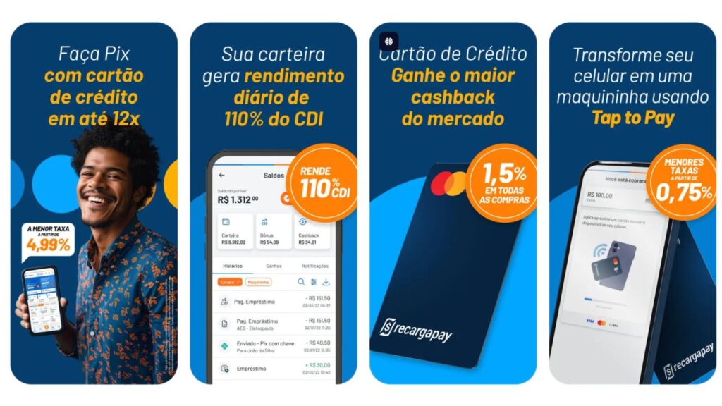 A RecargaPay atua como uma conta digital completa, reunindo pagamentos, Pix, rendimento de saldo e crédito em um único aplicativo. Isso permite que o usuário centralize toda sua vida financeira com praticidade e controle direto pelo celular.