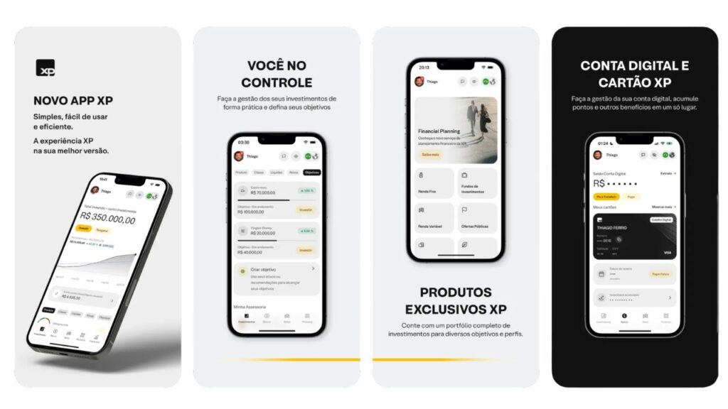 - Tudo no mesmo app — fatura, limite, cartão virtual e acompanhamento ficam centralizados no aplicativo XP